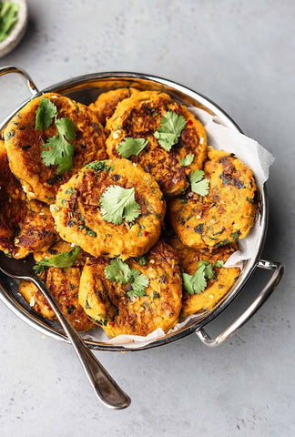 Lightly spiced curried sweet potato and chickpea patties. These patties are a great way to get your veggies in and are packed with flavour!