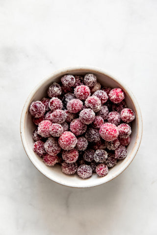- Transfer onto a cooling rack and let them sit for about 1-2 minutes. Then place them in a bowl or onto a plate filled with either monk fruit sweetener or granulated sugars. Coat them well and transfer back onto a cooling rack. Let them dry until maple has hardened and sugar is stuck to the cranberries.